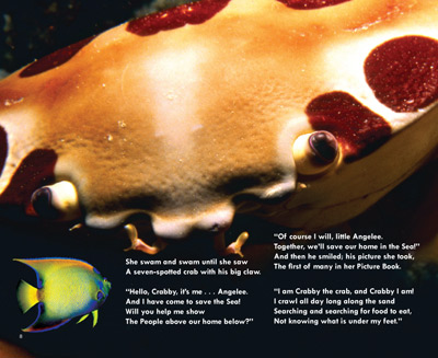 “Angelee Saves the Sea” is the first of it's kind adventure story for children that helps teach them about the oceans and how mankind has impacted it and caused harm to the fish that live in it.  Through real underwater photographic images, children “see” the beauty of the sea and get to know its inhabitants.
